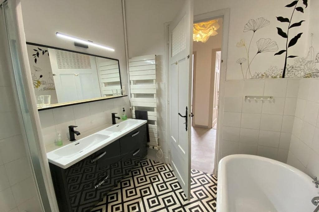 Au rez-de-jardin, un appartement indépendant composé d’une chambre double, d’une chambre avec deux lits superposés, d’une salle de bain et d’une terrasse privative, pourra accueillir confortablement 4 autres personnes.